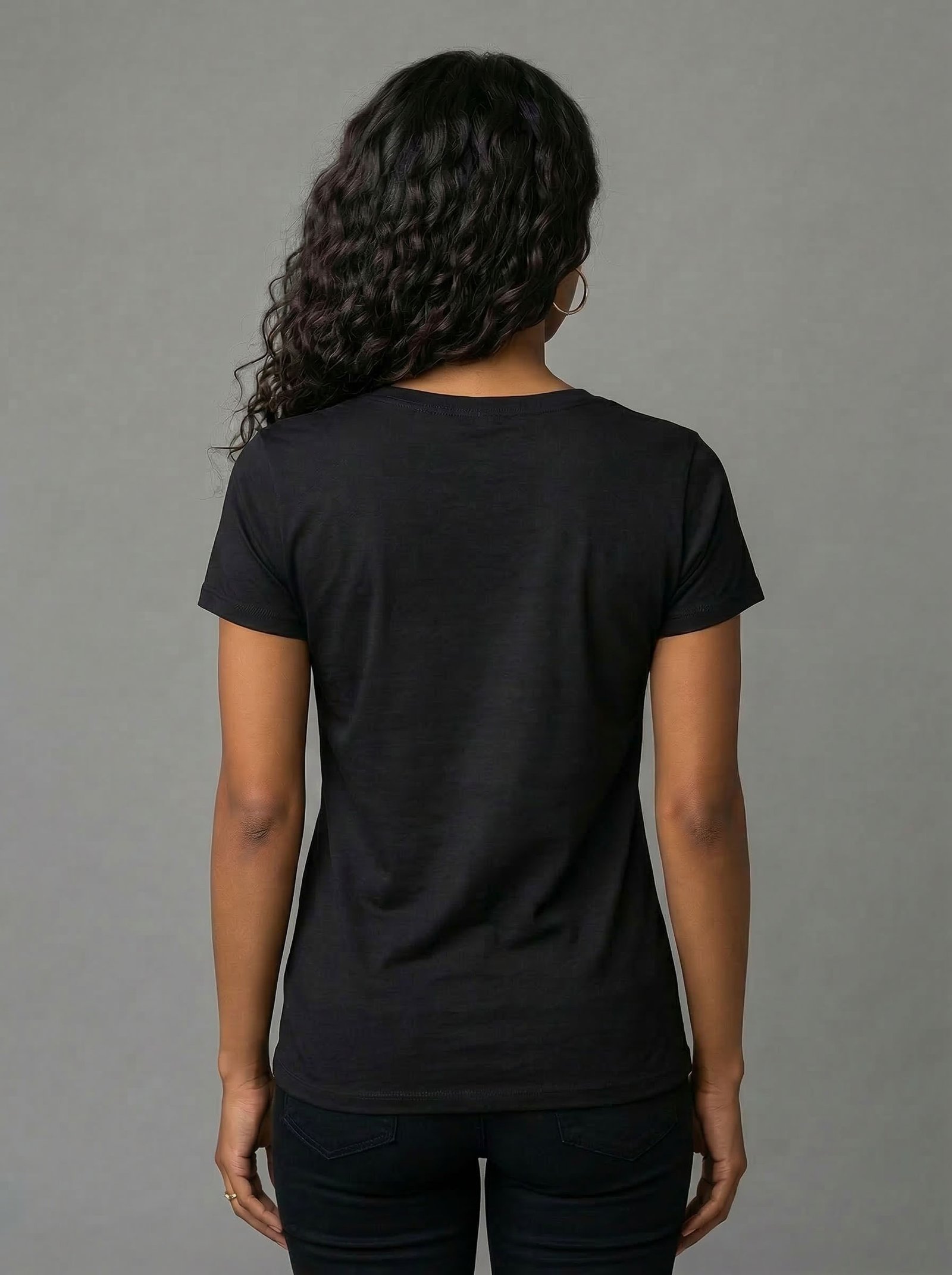 - Stretch Tee- shirt with plum glitter graphic on front.