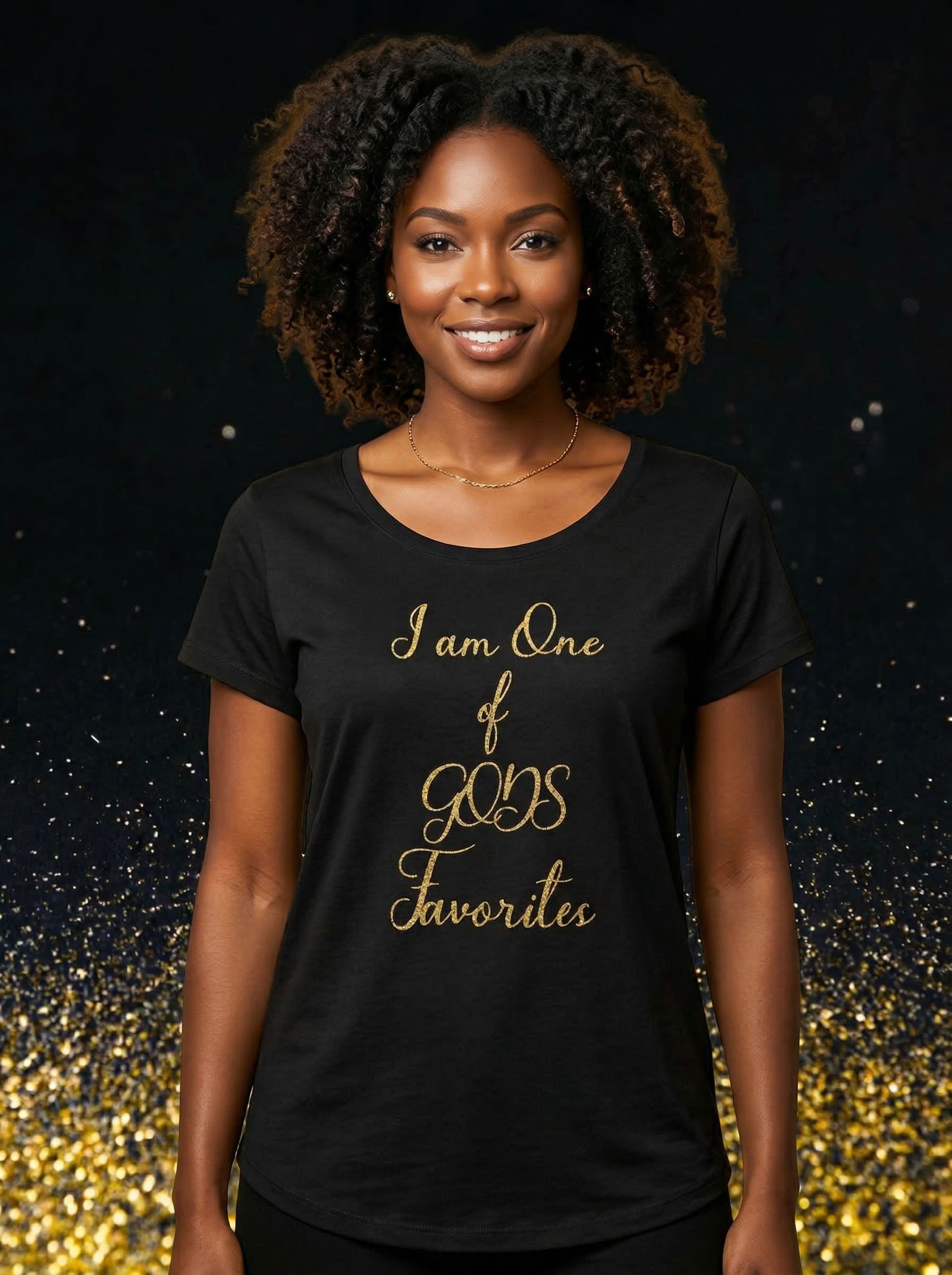 I am ONE of GODS Favorites- Tee- Shirt (Black w/Gold Script)